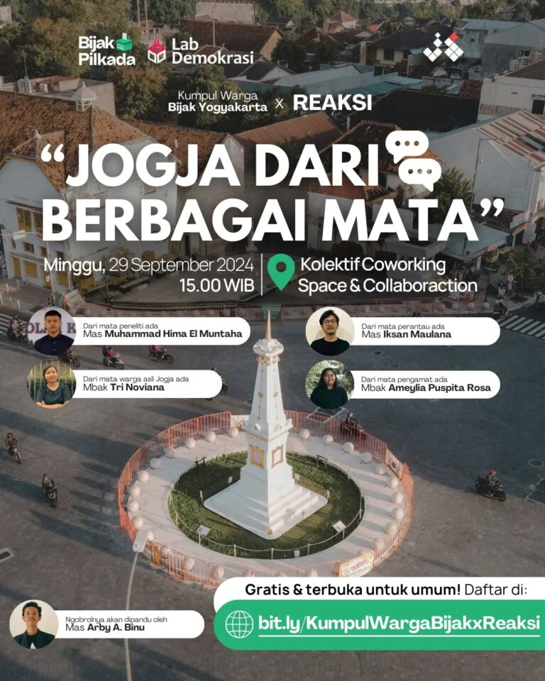 Inilah kesempatan buat ngobrol bareng di Kumpul Warga Bijak Yogyakarta x REAKSI dengan tema “Jogja Dari Berbagai Mata” πβ¨ Ini acara offline pertama yang pastinya nggak boleh dilewatkan! π